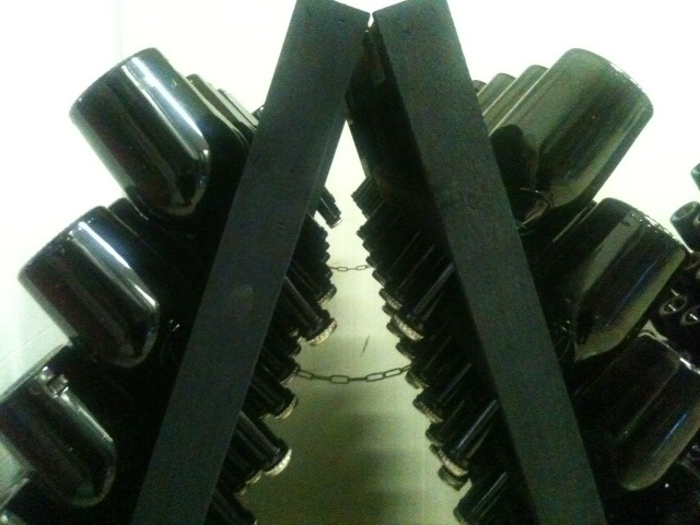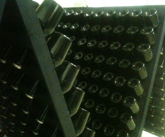 Dalla settimana scorsa è partita l’operazione remuage per le bottiglie dell’Equilibrista 2010. Proprio come avviene per gli Champagne – o gli spumanti realizzati con il metodo champenoise o Classico – infatti, le bottiglie in cui la nostra Equilibrista rifermenta per 9 mesi vengono sistemate sulle pupitres (i tipici supporti costituiti da coppie di tavole di legno con dei fori n cui sistemare le bottiglie a testa in giù). Da questo momento, le bottiglie andranno periodicamente girate – a mano! – con l’operazione detta appunto remuage, per favorire il completo amalgama di zuccheri e lieviti selezionati a cui si devono le bollicine, e per far depositare le fecce del lievito verso il tappo, eliminandole poi con la pratica del degorgement.
